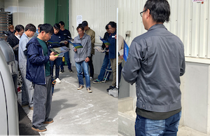 部員は、ほぼ植付作業が終了し管理作業の合間のひと時、施設管理職員の丁寧な説明を熱心に聞き入っていました。
