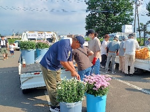 開催時間前から待ち望んでいた多くの町民の方々が来場し、生産者との会話を楽しみながら買い物をしていました。