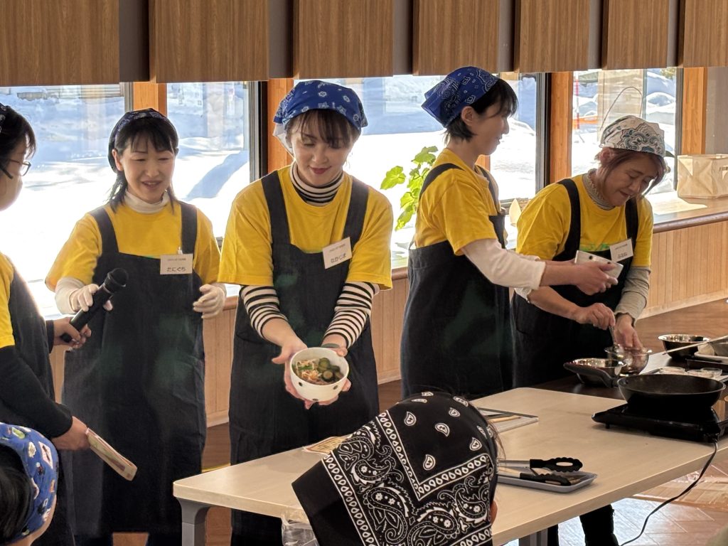 1月25日JA上川ビルにて、上川生産連主催による食育イベント「JA女性部・青年部が考えたご飯がすすむ農家めしをつくっちゃお!」が開催され、当JA女性部から役員3名がインストラクターとして参加しました。