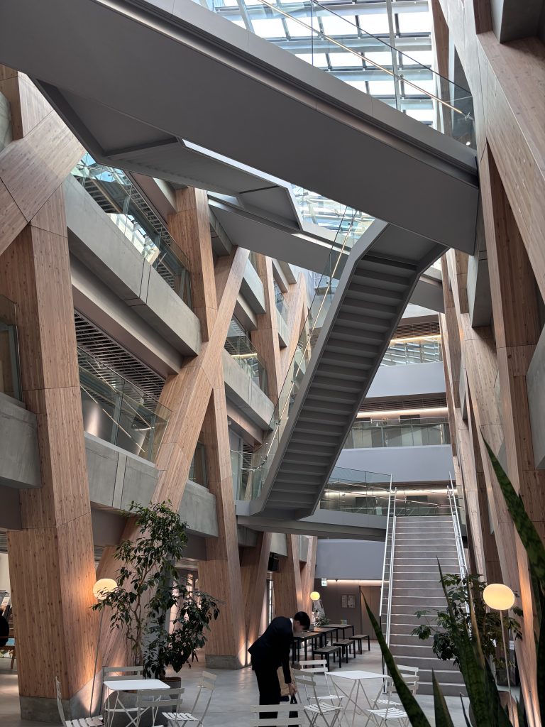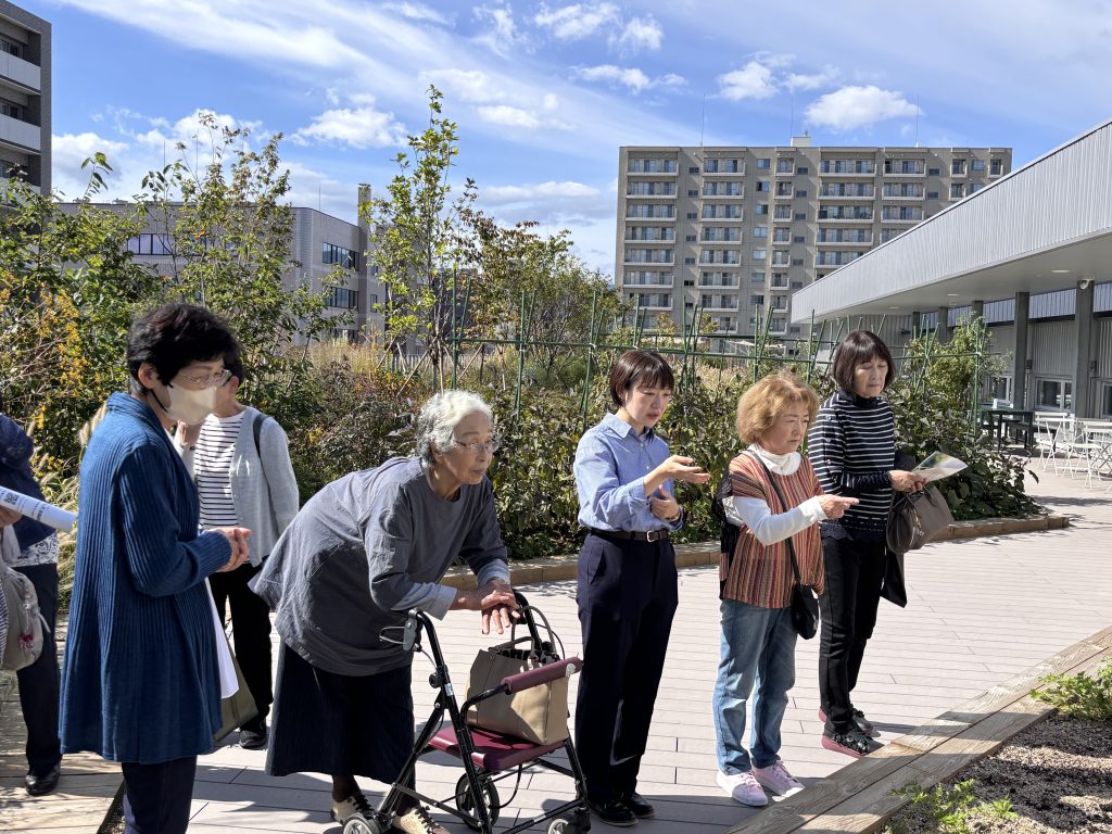 2日目は2024年に誕生したエア・ウォーターの森を見学。木造4階建ての建物は、持続可能な社会の実現と安全安心で豊かな暮らしの実現のため、社会課題解決に向け大学や自治体、地元企業と連携する場となっており、コワーキングスペースではテレワークや打合せしているグループなど様々な活用がされていました。屋上ガーデンは四季を感じられる植物が一周植えられており、部員は興味深く名前を検索しながら秋の草花を楽しみました。