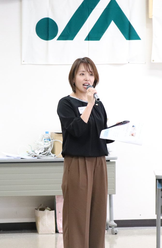 手芸講座のあとは、6月に開催されたJA上川地区女性部管外研修報告を、研修に参加された盛永副部長がスライドを使って行いました。
