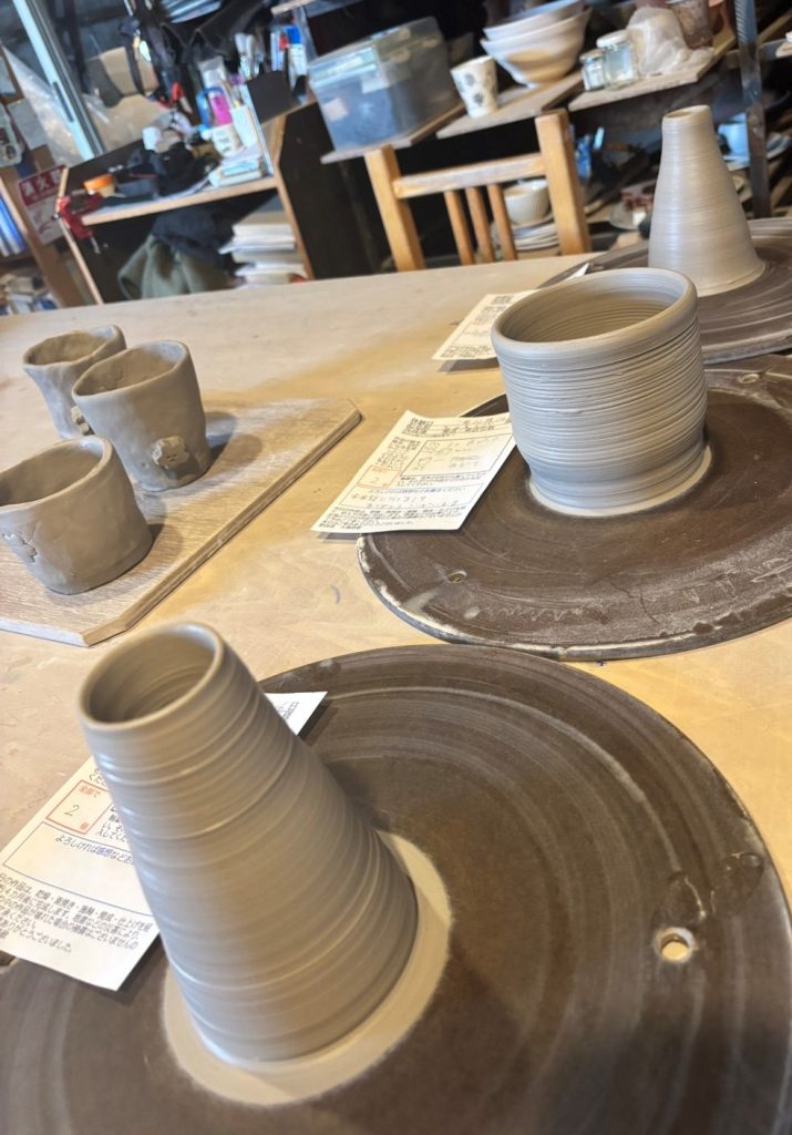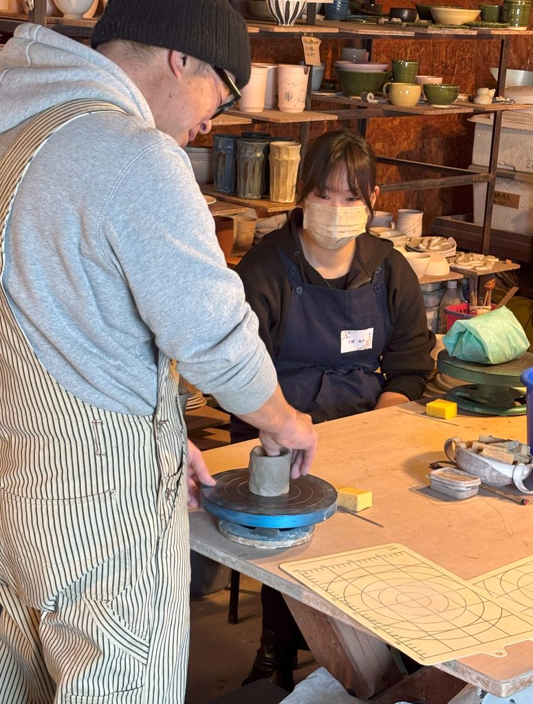 リピーターの学生は、しっかりと作りたい物のイメージを固めてきている方が多く、手際よく丁寧に仕上げていました。また初めて陶芸を体験する学生も大槻先生に積極的に質問しながら素敵な作品を作り上げていました。