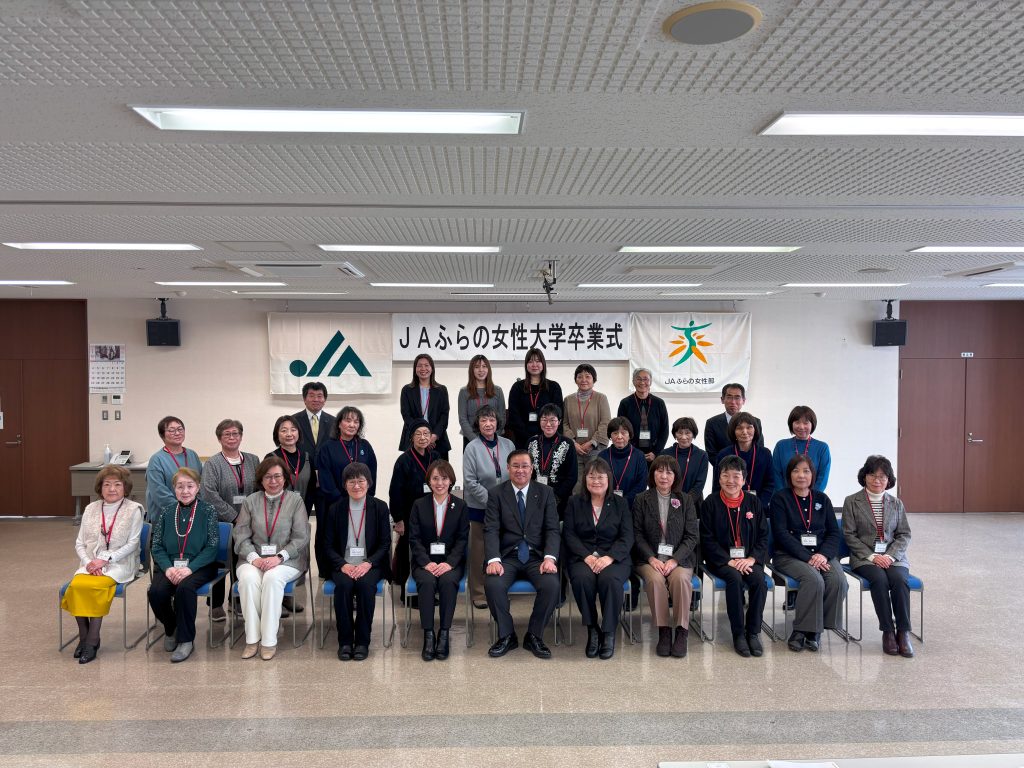 尚、JAふらの女性大学につきましては、新しくご参加いただく方が少しずつ減ってきている状況を受け、大変心苦しい限りではございますが令和8年度新規入学の募集を一旦お休みさせていただくこととなりました。再度募集開始となった折にはご案内申し上げます。